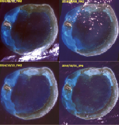 Due to the remote location of Dongsha Atoll, it is protected from human disturbance and therefore endowed with an independent ecosystem and rich biodiversity. Since the atoll spans a wide area that is relatively inaccessible by boats, optical satellite imagery is suitable for investigating environmental changes at Dongsha Atoll. According to satellite images, Dongsha Atoll can be divided into several habitats, including coral, seagrass, silt and reef. Preliminary classification is conducted through satellite imagery, which is combined with the outcome of ground truth survey to generate spatial distribution information for Dongsha Atoll’s habitats and environment.
