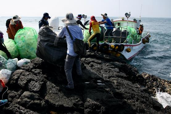 西吉嶼海岸因受強烈季風與複雜海流作用,長期以來在柱狀玄武岩海岸的基部堆積了大量經由海漂而來的廢棄物,影響原本壯麗的海岸地形景觀之美。然而西吉嶼北方多為幾近垂直的海蝕崖所包圍,壯觀的柱狀玄武岩高達數十公尺,海岸垃圾的收集與清運為一大挑戰,本次淨灘特別邀請退役的特戰志工前來協助,將揀拾完的垃圾運至岸邊,再利用東吉當地居民的管筏,接駁至遊艇上,由遊艇將垃圾運回馬公交給環保局協助去化,整個淨灘過程需克服海象、天候、人力搬運等因素,極為艱辛。